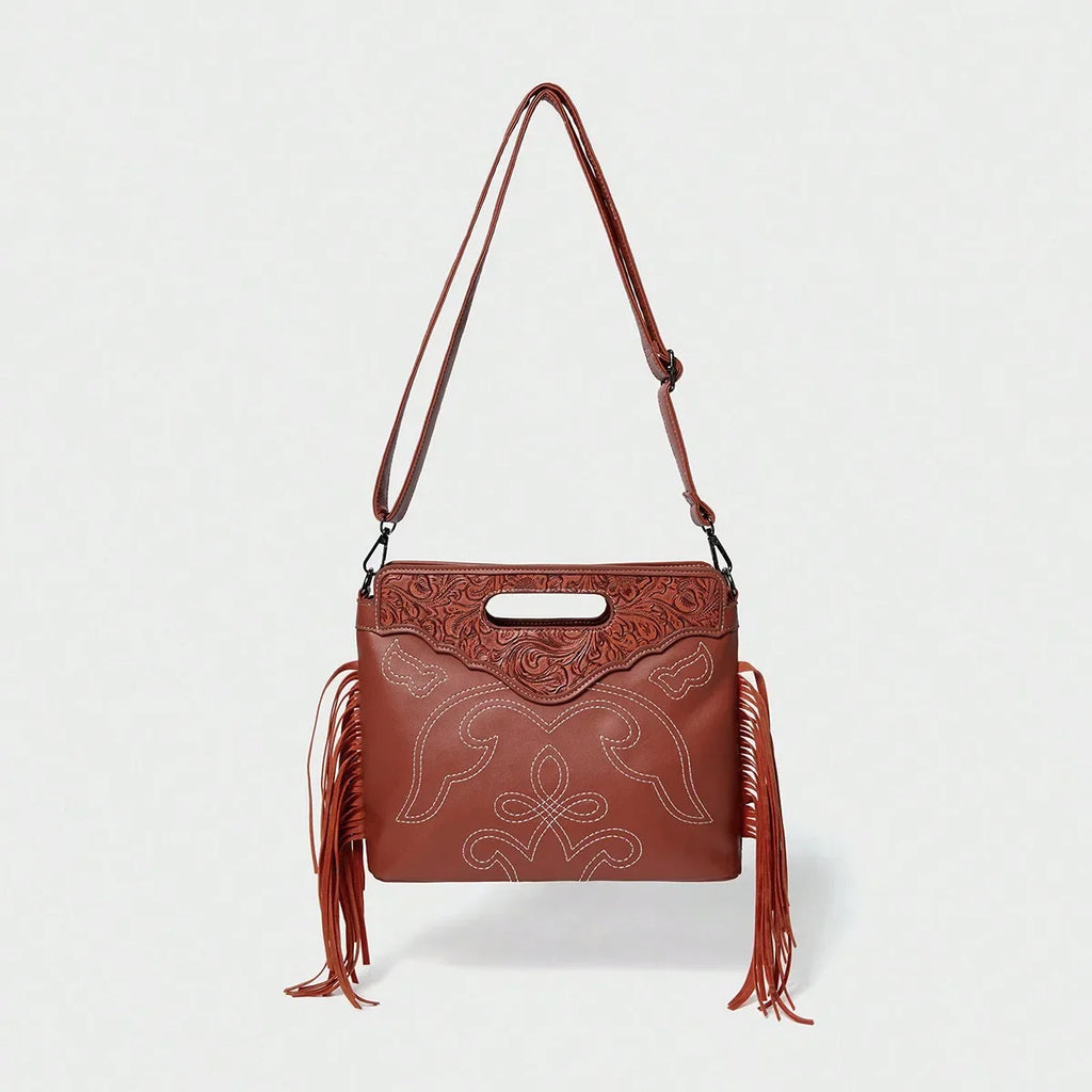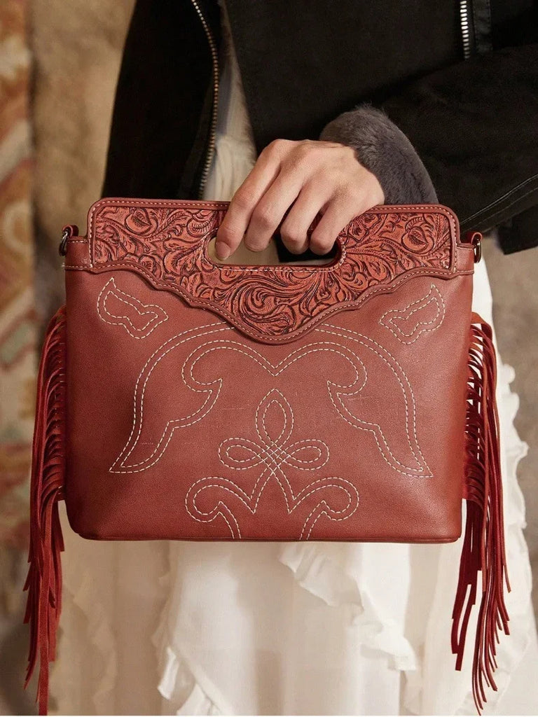 Elegância e Estilo Country A Bolsa "Ranchera" combina o charme do estilo country com um toque de sofisticação. Com franjas marcantes e detalhes dourados, este modelo é perfeito para quem deseja compor looks western elegantes e autênticos. Design Sofisticado:...