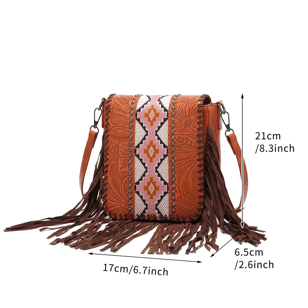 A Bolsa Brisa do Sertão é a escolha perfeita para quem deseja adicionar um toque rústico e sofisticado ao seu look. Com detalhes em couro e franjas laterais, ela traz o charme do estilo western, enquanto suas cores vibrantes dão um toque único e moderno. A alça ajustável oferece versatilidade para diferentes formas de uso, tornando-a prática e cheia de estilo.