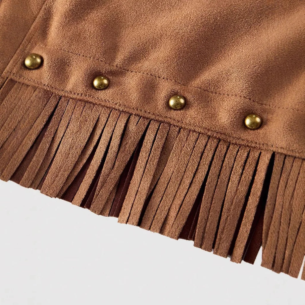 A Saia Florata é perfeita para quem busca um visual moderno com um toque western. Confeccionada em tecido de veludo marrom, ela se destaca pelos detalhes em franjas no barrado, que trazem movimento e charme à peça. Modelo versátil e cheio de personalidade, ideal para composições estilosas em diversas ocasiões.