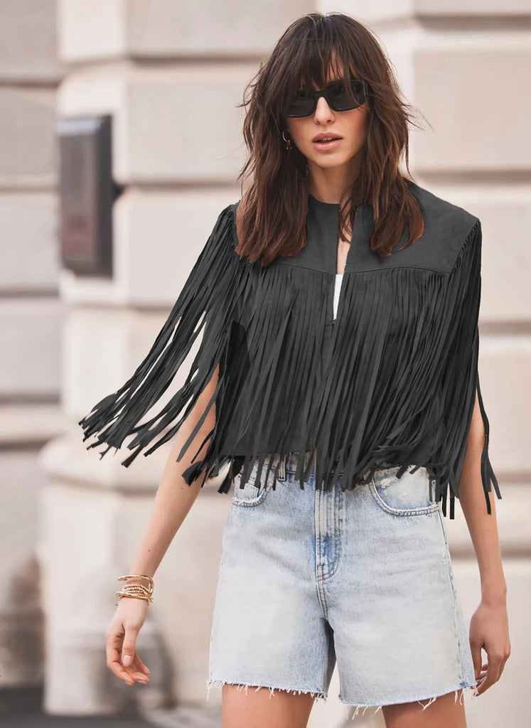 O Colete Bella Pampa é aquele toque final que transforma qualquer look. Com um design inspirado no estilo western, ele traz franjas delicadas que adicionam movimento e personalidade à peça. Disponível nas cores preta e marrom, duas opções versáteis e cheias de atitude, esse colete é perfeito para quem ama se destacar com elegância e autenticidade. Use com vestidos, camisas ou até mesmo por cima de uma t-shirt básica — ele vai elevar sua produção com muito estilo!