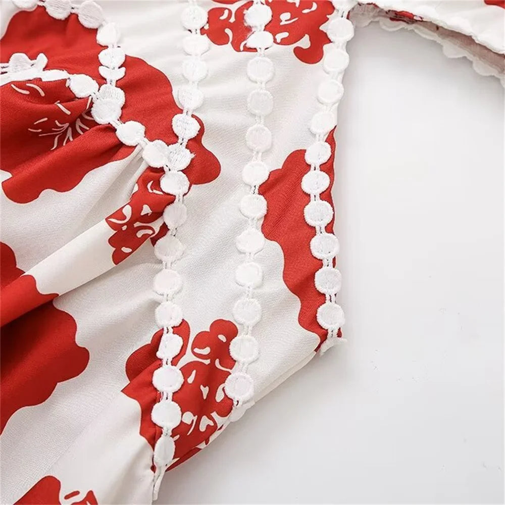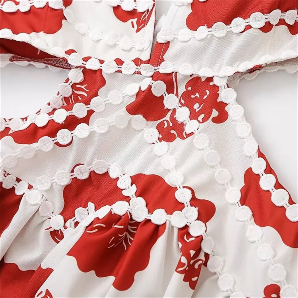 O Vestido Nairobi é a combinação perfeita de modernidade e delicadeza. Com uma estampa vibrante em tons de vermelho e branco, ele se destaca pelo seu visual contemporâneo e cheio de charme.